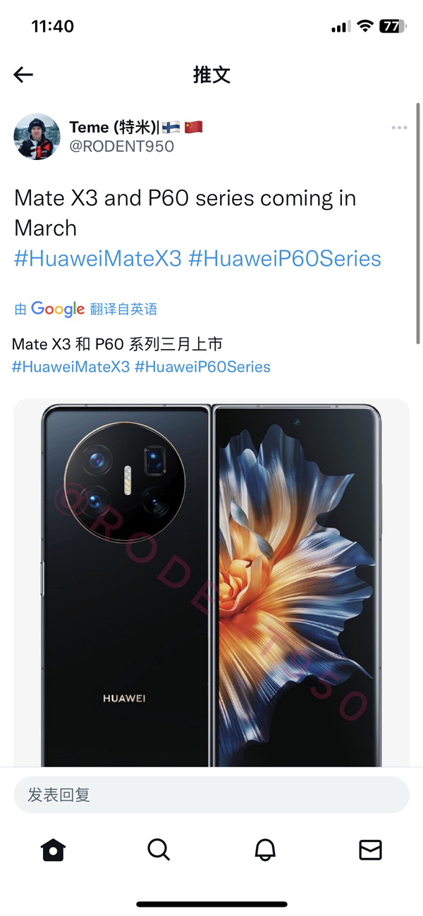 3月见!曝华为P60、Mate X3将同台发布:价格有惊喜