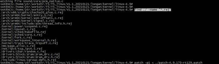 把解压后的补丁放到linux4.9目录下,然后用下面命令打包即可 patch -p1 < ./patch-4.9.170-rt129.patch