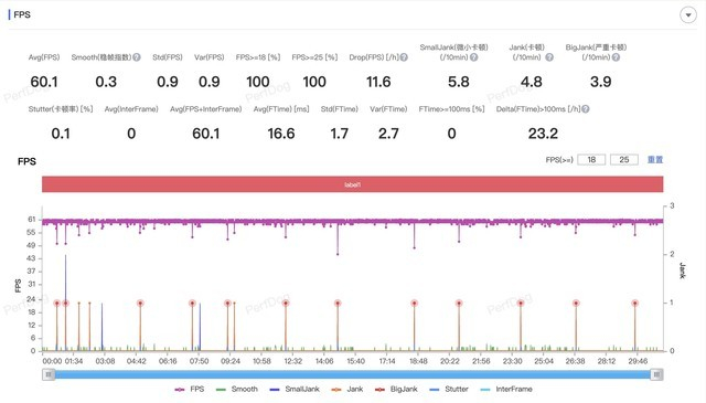 为了营造出极限的测试环境,我将《原神》设置为60帧+极高画质,在这样的画质设定下,打开GT模式,真我GT Neo5的20分钟平均帧率为60.1fps,帧率曲线仅有小幅波动,整体游戏表现十分流畅。