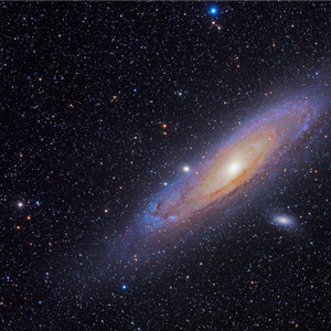 仙女星系在东北方向的天空中看起来是纺锤状的椭圆光斑,是肉眼可见的最遥远的天体之一。普遍认为仙女座星系是本星系群中最大的星系,外表与银河系相似。