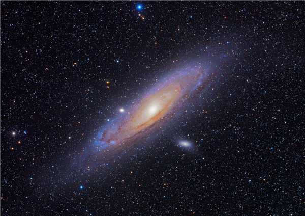 据了解,仙女星系曾被称为仙女座大星云,位于仙女座方位的拥有巨大盘状结构的旋涡星系,梅西耶星表编号为M31,星云星团新总表编号位NGC 224,直径22万光年,距离地球有254万光年,是距银河系最近的大星系。