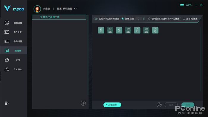 熟悉皇子的基本玩法之后,下面就为大家讲解如何通过雷柏VT9一键玩皇子EQ二连。相信许多的玩家有时候会因为手速不够快而没法发出皇子的EQ二连,我们可以通过宏定义的设置,将完美解决您的手速问题,让你一键就能发出EQ二连招,让你在游戏中快人一步发出皇子连招,离胜利更进一步。