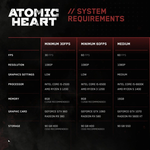 IT之家 2 月 9 日消息,《原子之心》将在 2 月 21 发售,登陆主机和 PC,Steam 售价 239 元,首发加入 XGP。今日,官方公布了这款游戏的 PC 配置要求。