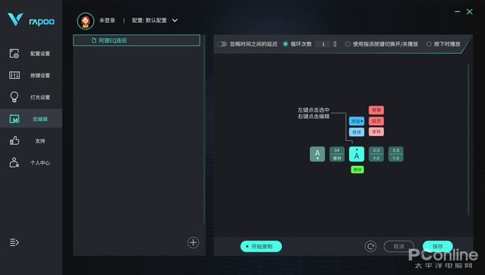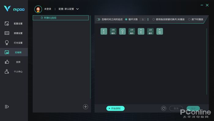 熟悉九尾妖狐的基本玩法之后,下面就为大家讲解如何通过雷柏V700-8A一键玩转阿狸。相信许多的玩家有时候会因为手速不够快而没法完成复杂的连招,例如EQ等,我们可以通过宏定义的设置,将完美解决您的手速问题,让你一键就能发出阿狸的连招,让你在游戏中快人一步,离胜利更进一步。