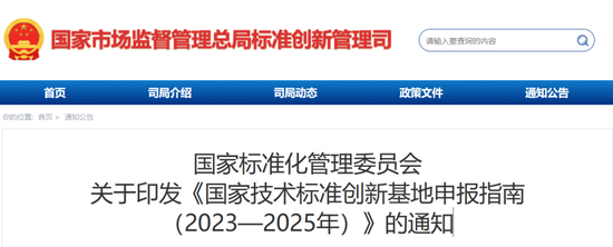 部委动态 | 国家标准化管理委员会关于印发《国家技术标准创新基地申报指南(2023—2025年)》的通知