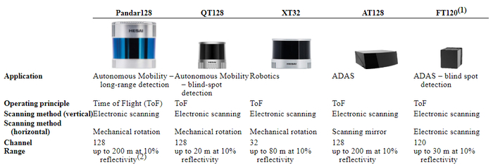 2016年10月,禾赛科技正式发布了第一款32线激光雷达;紧接着在2017年4月,禾赛科技推出新款40线激光雷达Pandar40,打破了国外同档次产品的垄断;随后在2019年发布了激光雷达产品“PandarGT 3.0”,其中使用了其自主研发的高速振镜系统和激光器;去年11月,禾赛科技又发布面向 ADAS 前装量产车的纯固态近距补盲激光雷达——FT120,预计 2023 年下半年量产交付。