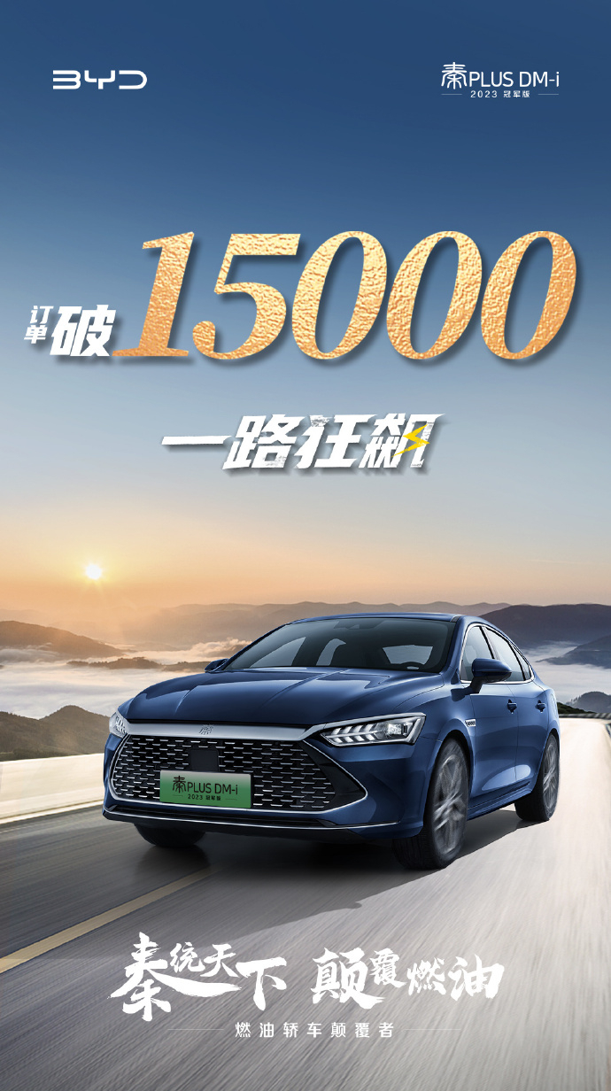 向合资燃油车发起总攻,比亚迪秦 PLUS DM-i 2023 冠军版上市三天订单破 1.5 万