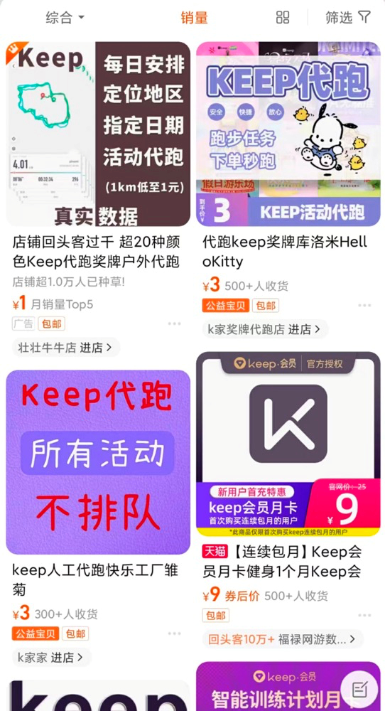 而一度猖獗的代跑产业链,则影响了Keep奖牌活动的观感。
