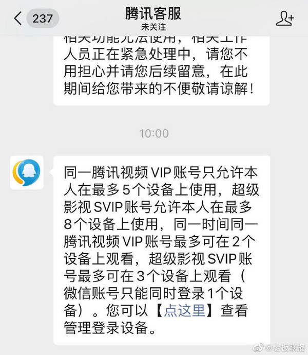 腾讯视频回应多设备登录被封号:最多可在2个设备观影