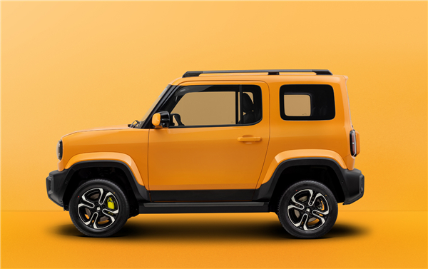 该车定位于微型电动车,其长宽高分别为3381/1685/1721mm,轴距为2110mm,侧面采用了较为宽厚的轮眉设计,侧裙位置还配有宽厚的踏板,而双门结构让该车整体样式更为灵活。