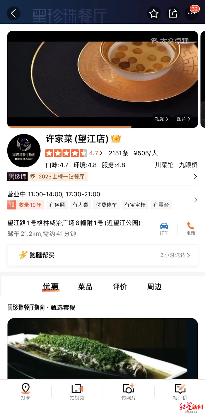 此前许家菜曾快速扩张,近十年来许家菜稳扎稳打,以“不食不时,至臻真味,家的味道”为理念,如今许家菜历经10余年发展,目前在成都和北京有11家餐厅,今年已经是望江店连续第四年拿下黑珍珠餐厅的称号。