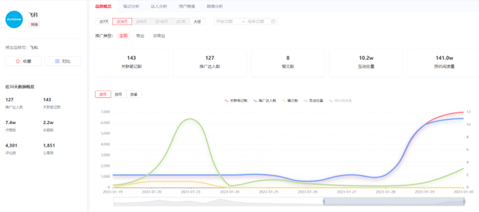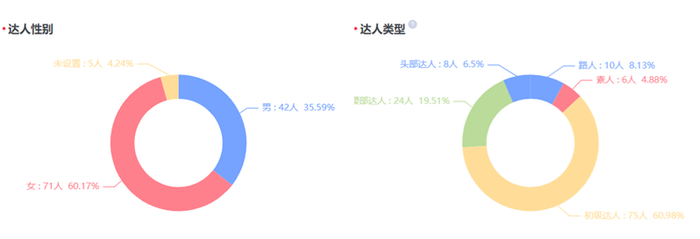 以新入驻的飞科的214投放为例,近1个月投放的达人为127人,大占比以初级达人+路人+素人为主;