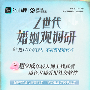 当代年轻人对于婚姻究竟是怎样的心态?哪些因素会影响他们最终进入婚姻?关于婚姻形式和生育话题,年轻人又有着怎样的新鲜思考?Soul App旗下Just So Soul研究院近日发布了一份《Z世代婚姻观调研》,最终有1618位年轻人进行了有效填写。