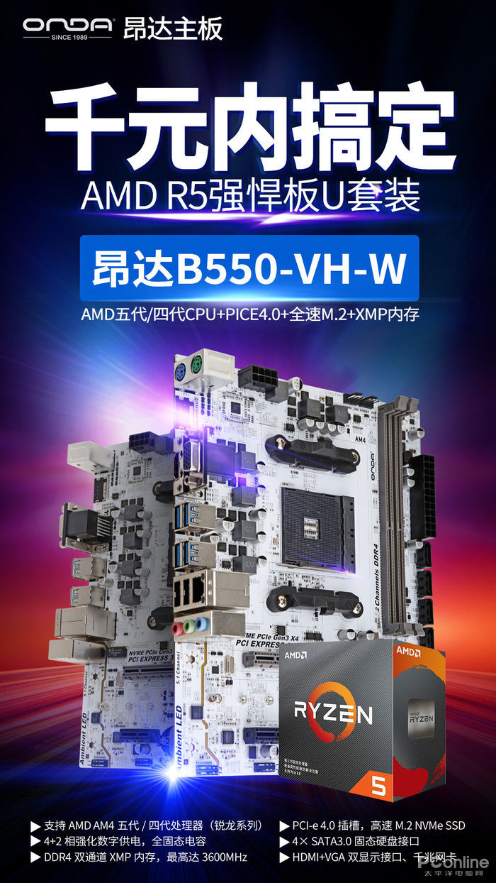 板U套装不到千元!AMD R5+昂达B550-VH超值绝配