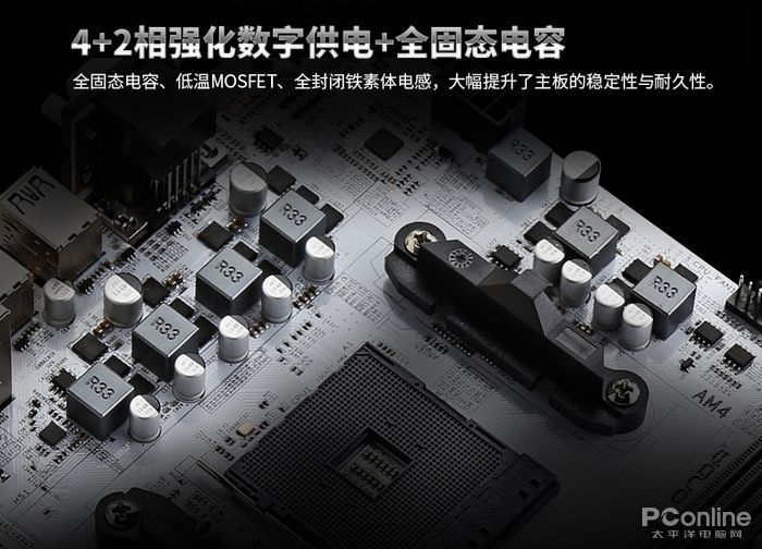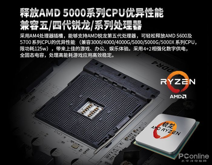 昂达B550-VH系列主板采用B550芯片组,AM4处理器插槽,支持AMD锐龙第四代与第五代处理器,采用4+2相强化数字供电,全固态电容,功耗上限为125W,高负载下同样拥有稳定输出,可轻松释放AMD5600与5700系列CPU的优异性能,为用户带来优质的办公与游戏娱乐体验。