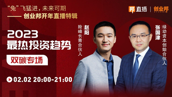 【创业邦开年直播特辑-双碳专场】邀请到了双碳领域最具洞察的投资人——险峰长青合伙人赵阳,以及绿动资本创始合伙人张国津,围绕新能源、新材料、ESG等话题展开了探讨,干货整理如下。