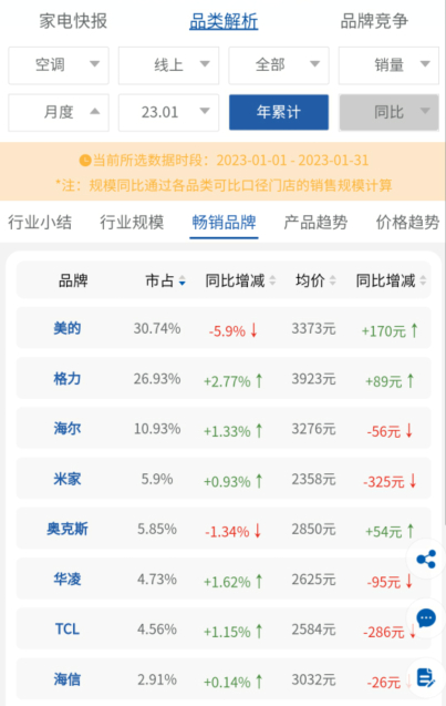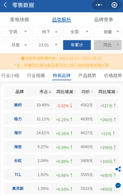 空调观察:2023开年走弱,这个强势品牌销量份额为何被“抢”?