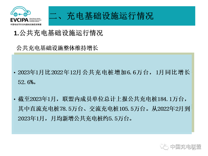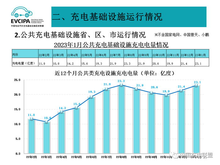 中国充电联盟:2023年1月全国电动汽车充换电基础设施运行情况