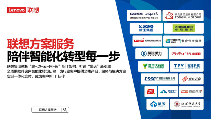 目前,联想已为诸多实体企业智能化转型提供了“新IT”解决方案,包括转型咨询与培训、新IT产品及解决方案实施部署、持续运维服务等在内的全栈全周期“一站式服务”。联想通过从传统IT辅助运营到新IT驱动创新的全面升级,成为客户值得信赖的新IT 合作伙伴。