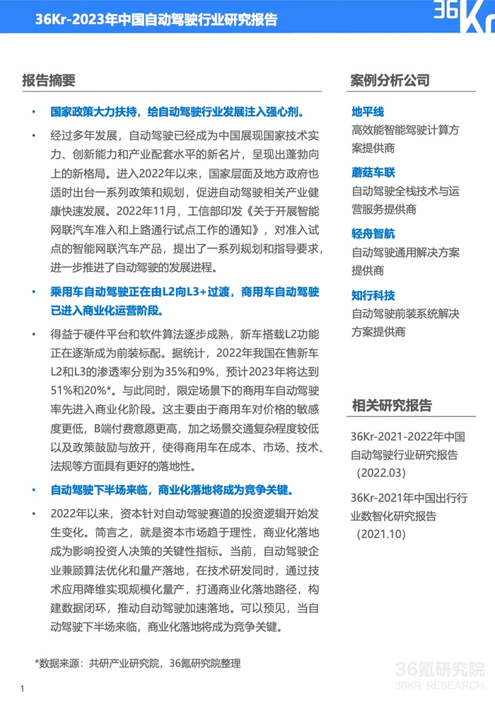 36氪研究院:2023年中国自动驾驶行业研究报告