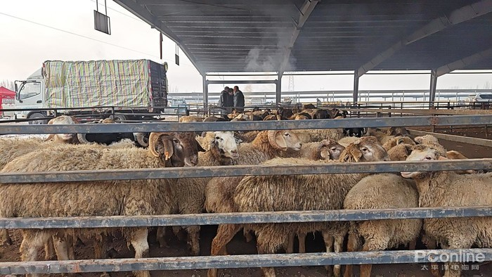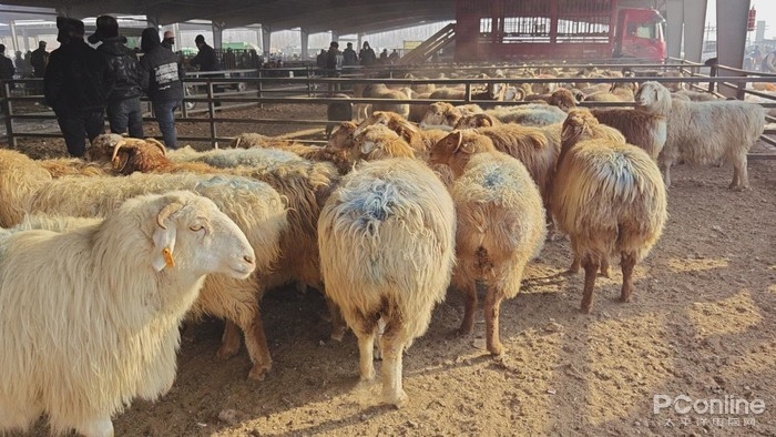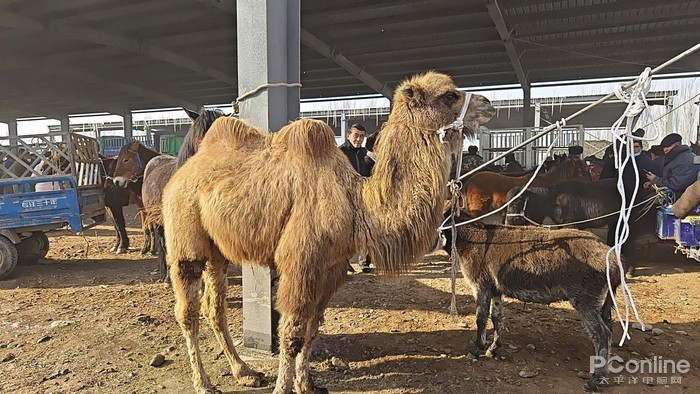 牛羊大巴扎从早上10点持续到下午3点,市场里一边是牛、羊、马、骆驼还有驴子的交易地,而另外一边则是美食区,同时还有卖生活用品、牲畜用品的摊位,如果来得太早,很多摊位都还没开始摆摊呢。交易的牲畜一般也是从很远的乡县开车过来的,所以我们10点钟去到的时候,还能看到牛羊在陆续进场,人也还没很多,不过也已经有一些牲畜已经在原地等待了。