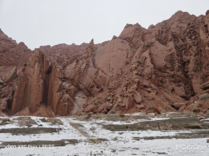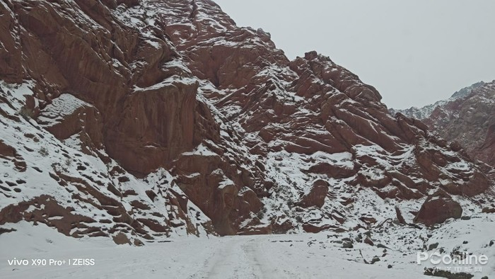 回程路上,两侧雪山连绵不绝,迎面而来都是震撼感。沿着314国道继续行驶,可以直接导航到红峡谷,这边的山因为含铁量丰富而呈现红色,同时气泡孔的结构和其他山体对比起来别具一格。