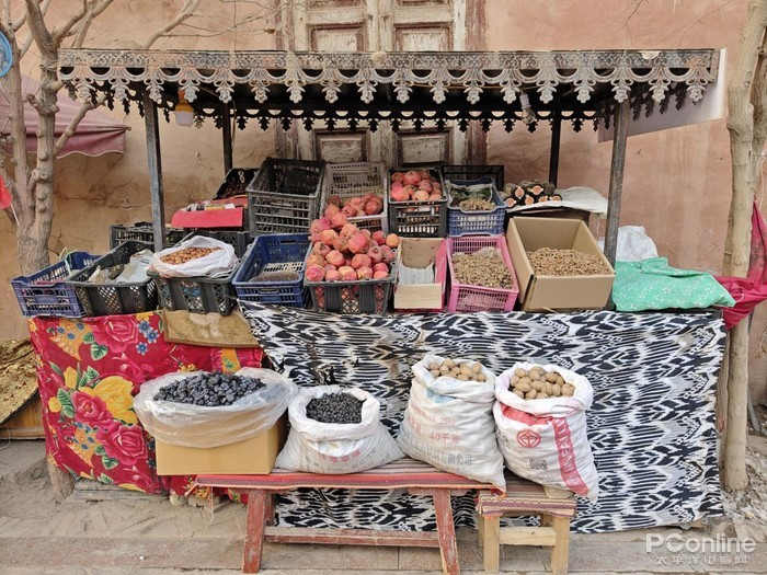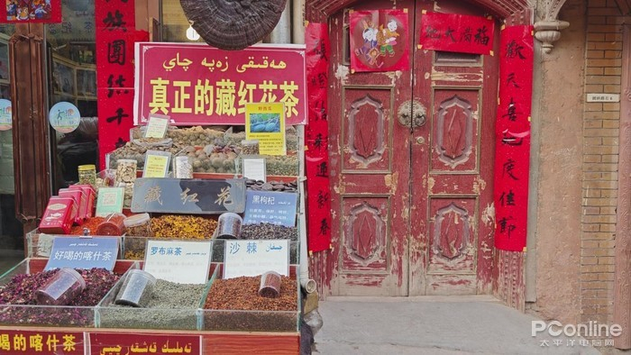 在不远处,还有一整条街是专门卖皮草的,羊皮、羊毛制品、雪兔制品等等。香料茶叶店也是遍布古城内,当地人们平常也很喜欢购买当地不同店铺老板调制的花茶以及香料,不愧是“香妃”故里。