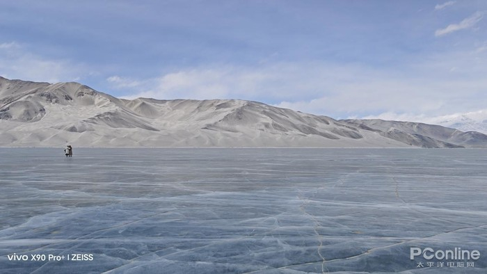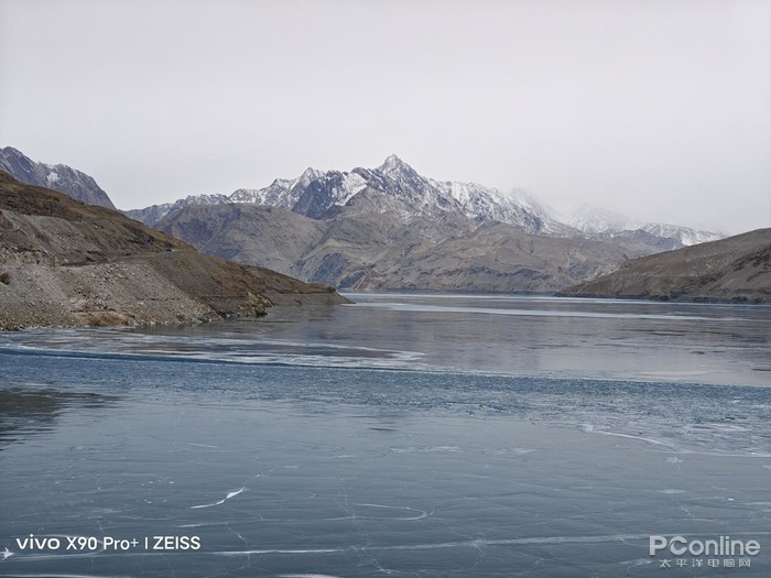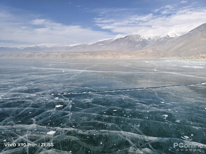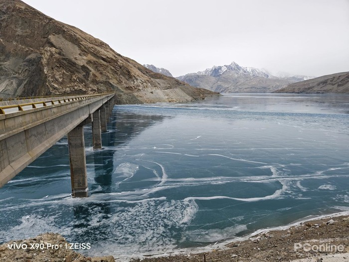 隐藏在帕米尔深处的班迪尔蓝湖其实并非真名,它的真实名字叫做下坂地水库,因为名字不好听以至于被“热心”网友改名成。在冬季,班迪尔蓝湖呈现结冰蓝湖状态,同时也可以远眺慕士塔格峰,因为湖上有一条直桥横跨,使用无人机航拍会很壮观,这也成为了很多人的打卡地。因为此行轻装简行,我便仅适用随身携带的vivoX90Pro+拍摄了一些照片,出片同样壮阔美丽。