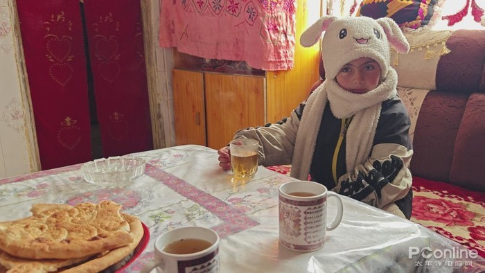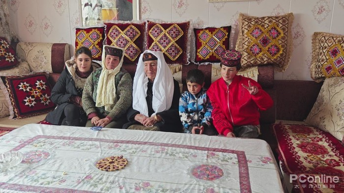 平时妈妈在家放牧干活,女儿则是要到塔县去上学,奶奶住在5公里以外的地方。塔吉克族一般都不太精通汉语,年纪越大就越显困难,但可以维持基本的日常对话。塔吉克族人极为热情好客,对待陌生人,他们拿出热茶以及馕饼来招待,并带我们参观住所。最后,我们还和房主一家拍了全家福,遇上非常有爱的一家,这可能也是旅途的意义。