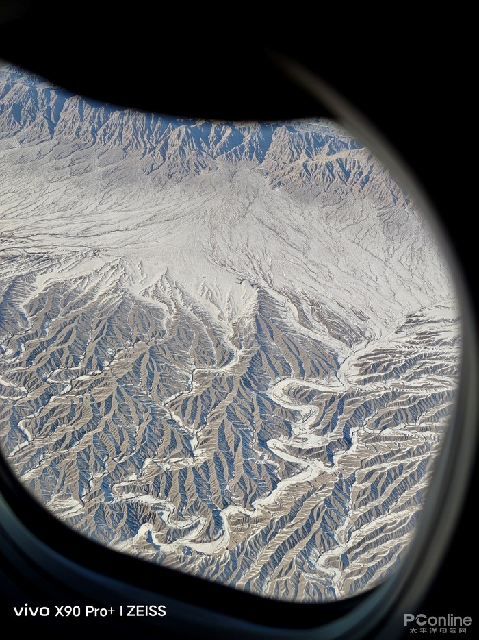 飞机特意选了靠右且靠前的位置,以便俯瞰横跨新疆的天山山脉,正值近年来下雪比较猛的一个冬天以及高海拔的影响,使得地貌呈现雪天特有的场景,宛若大地作画。如果留心窗外的话,白雪掩映之上,天山山峰和大峡谷尽收眼底,也免去了无法实地打卡的遗憾。此时此景,突然就想到了《航拍中国》新疆篇中的画面,居高临下俯瞰大好河山,