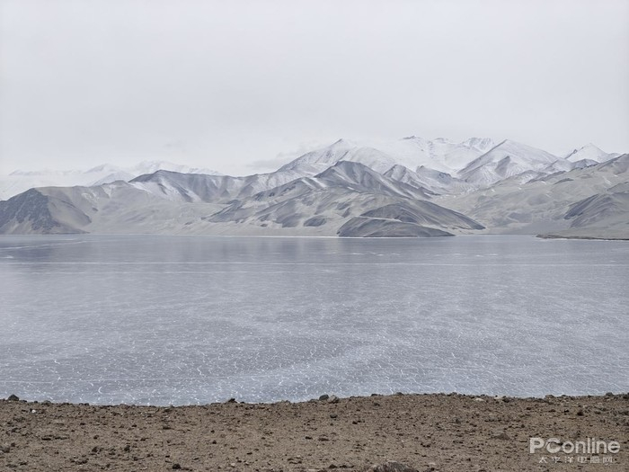 打卡白沙湖后还会经过喀拉库勒湖,也是一个高原湖泊,在这里,可以远眺慕士塔格峰。因为这边冬季湖面基本都是冰裂纹,和白沙湖差不多,但没有白沙湖那么震撼,而且路上限速60-80,距离塔县还有一段路,所以为了赶路,我们拍了几张照片继续赶路了。