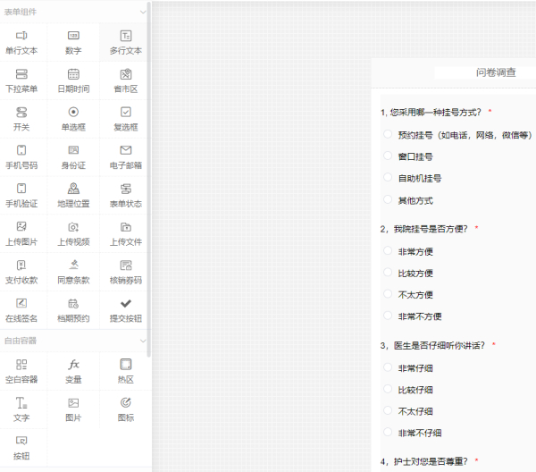 第三步:设计问卷调查内容里,自己设计调查类目,而类目问答形式可如常用的单选题、多选填提、填空题、评分,完美的满足多种场景需要,特别注意的是,问卷调查设计的题目不要很多,要不然参加问卷活动的人会感觉疲劳