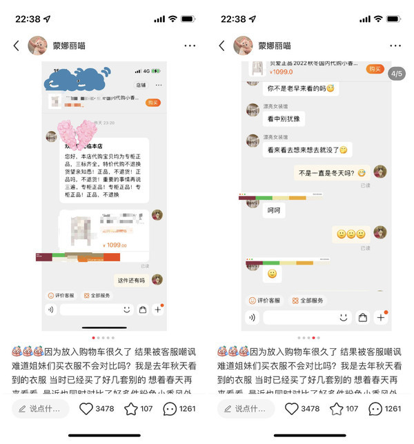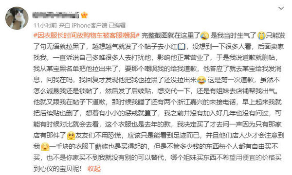 因衣服长时间放购物车被客服嘲讽