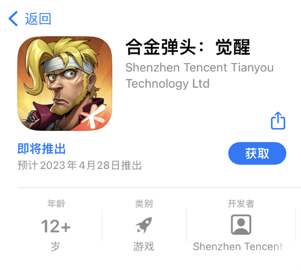 今天,一款腾讯打造的全新手游《合金弹头:觉醒》登陆了苹果App Store首页,目前已经正式开启预约,界面显示预计4月28日上线。