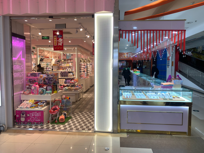 其间,你得路过卖金银珠宝的柜台、品牌服装店、干洗店、奥莱折扣区……