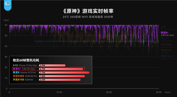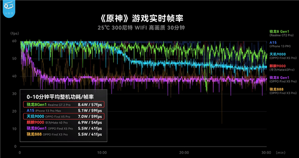 去年上半年天玑 9000 对上骁龙 8 Gen 1,虽然它俩 CPU 架构一致导致性能拉不开差距。但在能效方面采用台积电 4nm 的天玑 9000 发挥就很出色,游戏功耗比骁龙 8 Gen 1 低了一截。