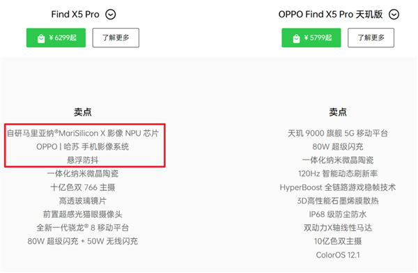 包括 OPPO Find X5 Pro 天玑版也是一样。绿厂引以为豪的自研马里亚纳 X 影像芯片、哈苏影像系统以及悬浮防抖在这台手机上一个都没,而骁龙版则全部具备,差别对待不要太明显。