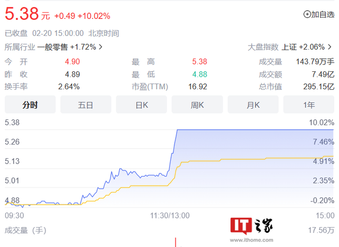 IT之家 2 月 20 日消息,浙江中国小商品城集团今日正式发布了 Yiwu Pay 义支付,标志着全球最大的小商品集散中心拥有了自己的全球支付渠道。截至IT之家发稿,小商品城收盘报价 5.38 元,涨超 10%。