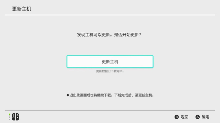 将 Nintendo Switch 连接到网络后,将自动下载更新包。下载完毕后,将在开始软件前显示主机更新说明,请依画面指示进行更新。