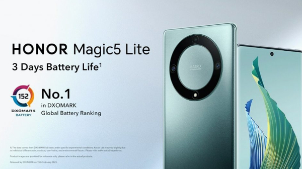 荣耀Magic5 Lite获DXO电池性能第一名 续航可超三天