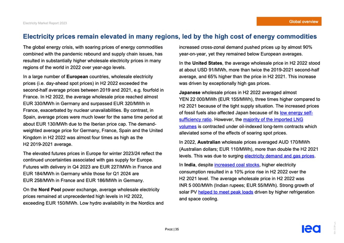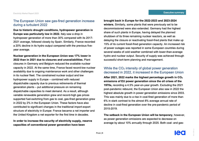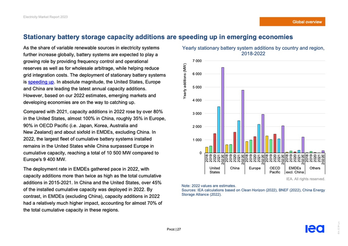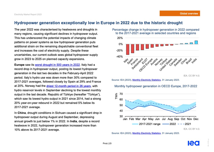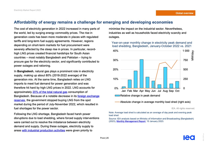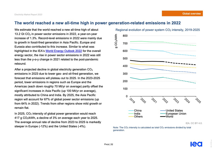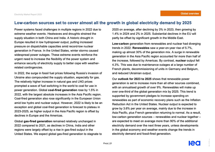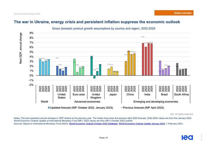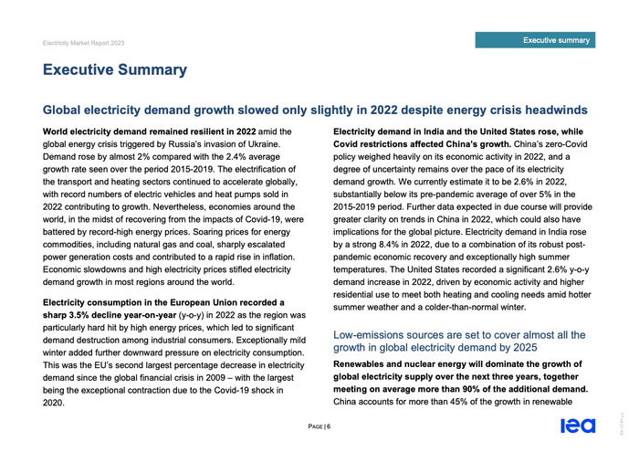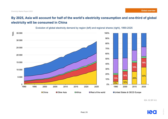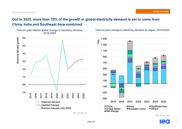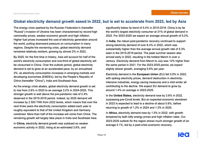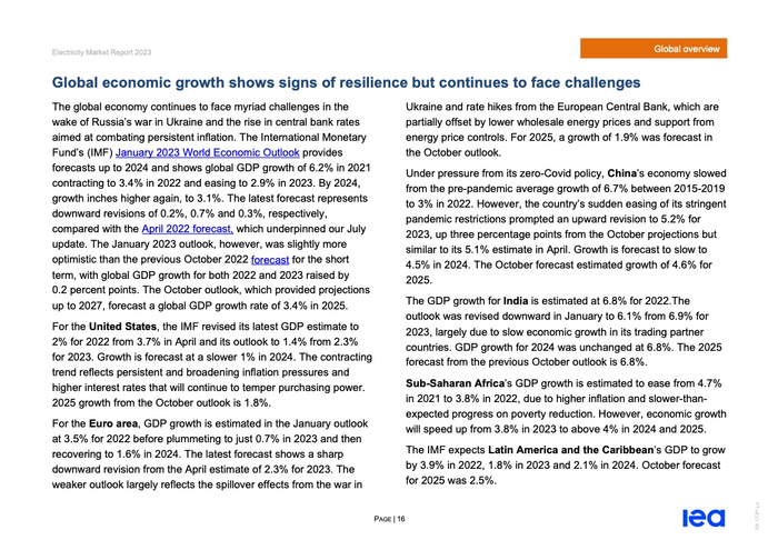 在报告中,国际能源署分析了2022年全球以及各个区域(亚太地区、美洲、欧洲、欧亚地区、中东和非洲)的电力供需情况,并对2023—2025年电力需求进行了预测。