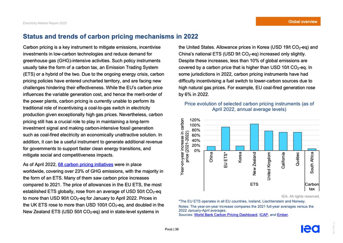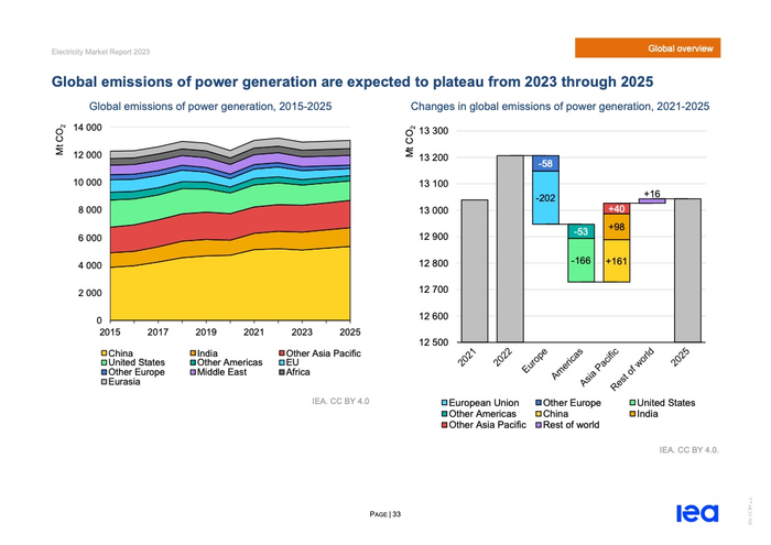 2022年,全球与发电相关的碳排放量创下历史新高,同比增长1.3%,与疫情前5年平均涨幅相当,低于2021年涨幅(6%)。