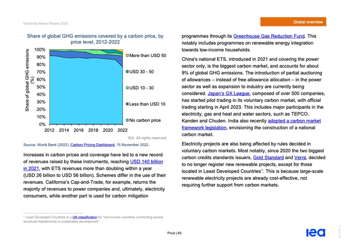 亚太地区2022年总发电量中,燃煤发电占比最大,为57%;核能和可再生能源等低碳能源发电量占比为32%。由于对化石燃料尤其是煤炭的高度依赖,亚太地区发电相关碳强度居全球首位,2022年为590克CO2/kWh,高于全球平均值(460克CO2/kWh)。