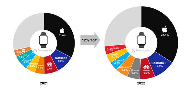 2022年全球智能手表品牌排名:华为第三 印度品牌大涨