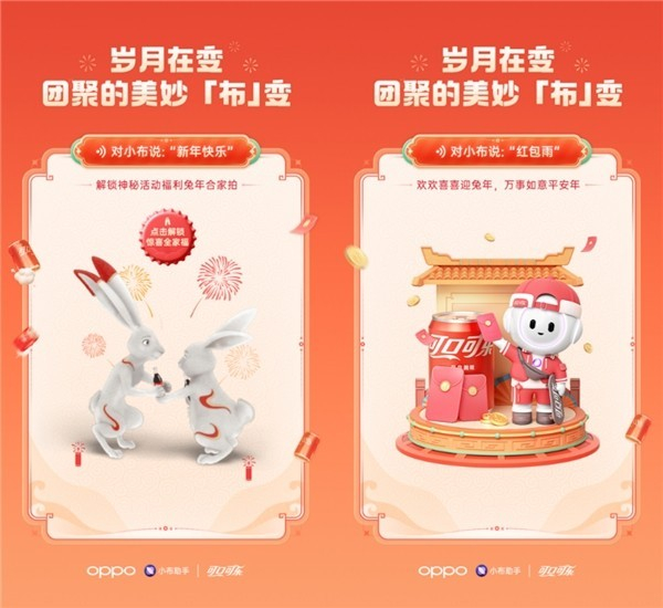 此次与可口可乐的新春合作,小布助手基于品牌对消费者春节团聚情感的深刻洞察,凭借AI能力深度赋能内容合作、探索更多春节营销创新场景、打造传统年俗创新交互玩法等组合拳出击,形成了“端内虚拟场景氛围打造+原生交互功能创新植入+跨端跨场景流量触达”的全新AI营销模式。