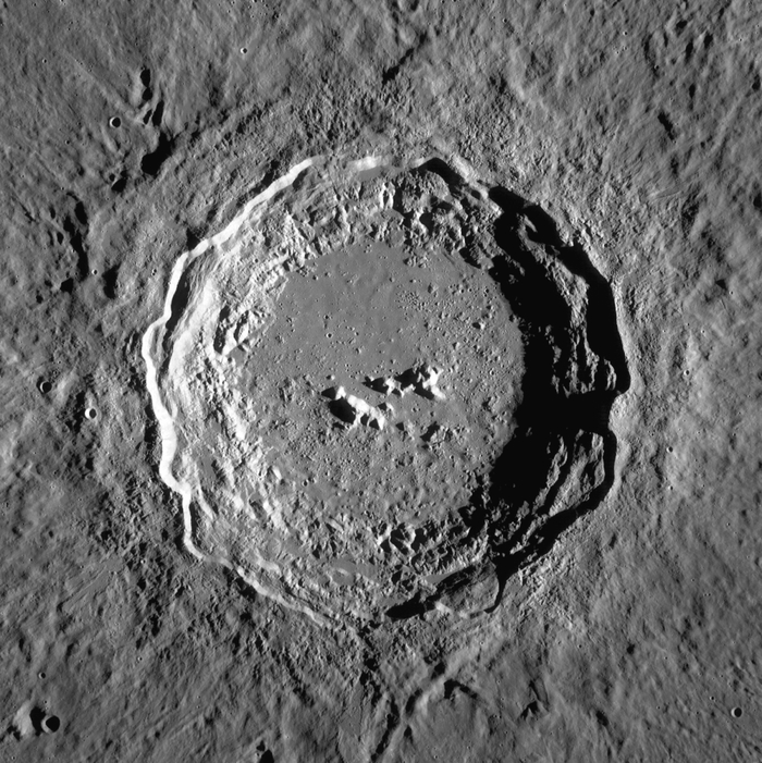 4. Kepler Crater:位于月球南部,是一个非常引人注目的环形山.它最著名的是覆盖周围射线系统(ray system)。射线延伸超过 300 公里,与其他陨石坑的射线重叠。一个小的喷射线状物围绕着 Kepler Crater 的边缘的外部,外壁略呈多边形,内墙倾斜并略呈阶梯状,像一朵盛开的花朵,可以说是月球上比较具有文艺气息的地貌了。