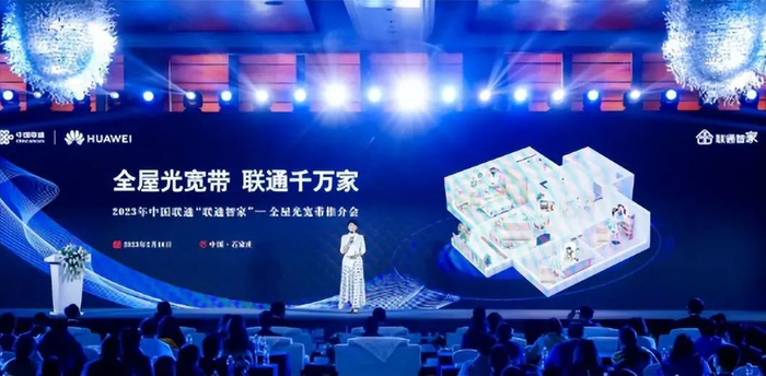 隔天,中国联通在河北石家庄隆重举办了“联通智家”—全屋光宽带推介会,重磅发布基于华为FTTR星光F30的全屋光宽带新品。