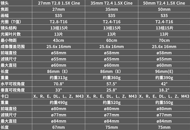 通过上面的列表我们可以了解到,三枚镜头体积小、重量适中,与索尼FX3便携电影机或A6300这样轻巧微单搭配起来非常协调,并没有头重脚轻的感觉。也让用户在拍摄和携带的时候更加省力、方便。