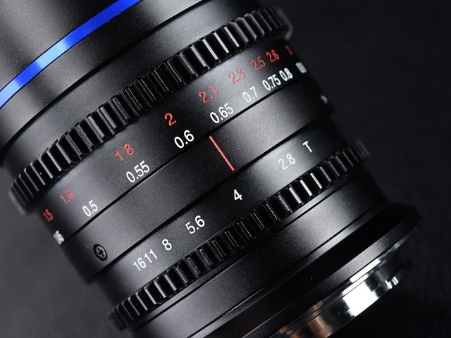 对焦环位于镜头前半部分,之后则是对焦环。作为一款以视频拍摄为主要用途的电影镜头,对焦环和光圈环都采用无级调节方式,且手感非常细腻有助于更精细化的操作。镜头自带跟焦齿与光圈调节齿,利于跟焦器、光圈调节结构驱动,保证了拍摄的便利性。