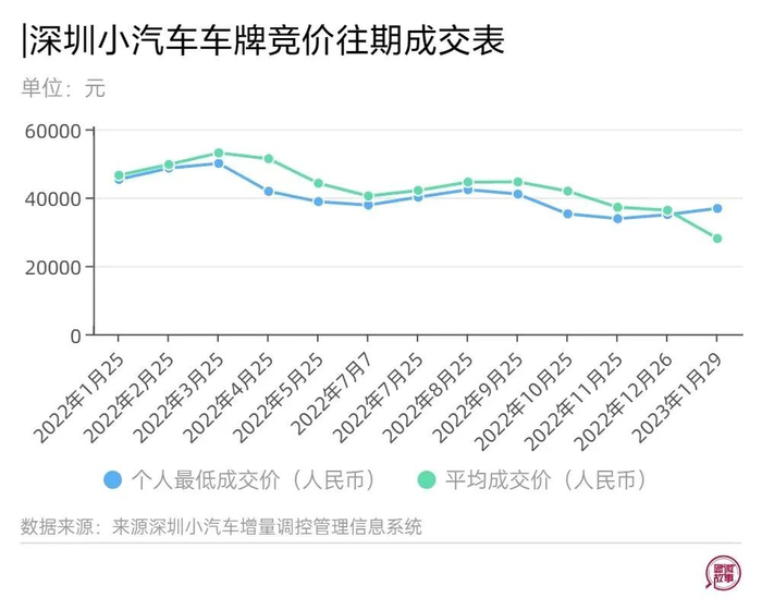 截止到2022年年底,广州个人车牌成交最低价仅为11900元,均价12826元。
